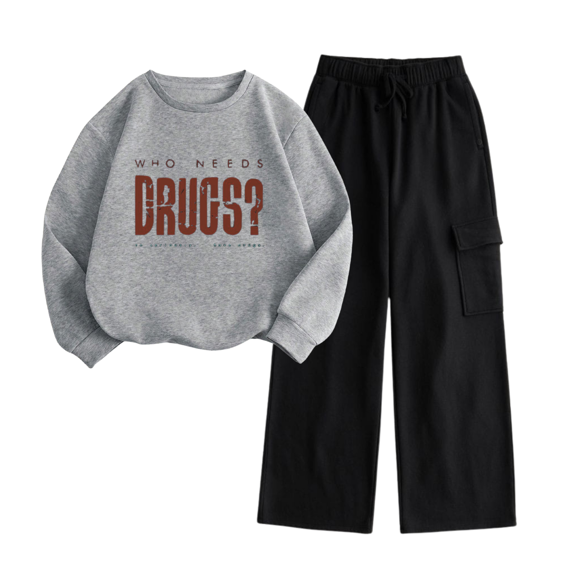 - Cargo Design: Features bottom pockets inspired by classic cargo style, adding functionality and style to the sweatshirt.