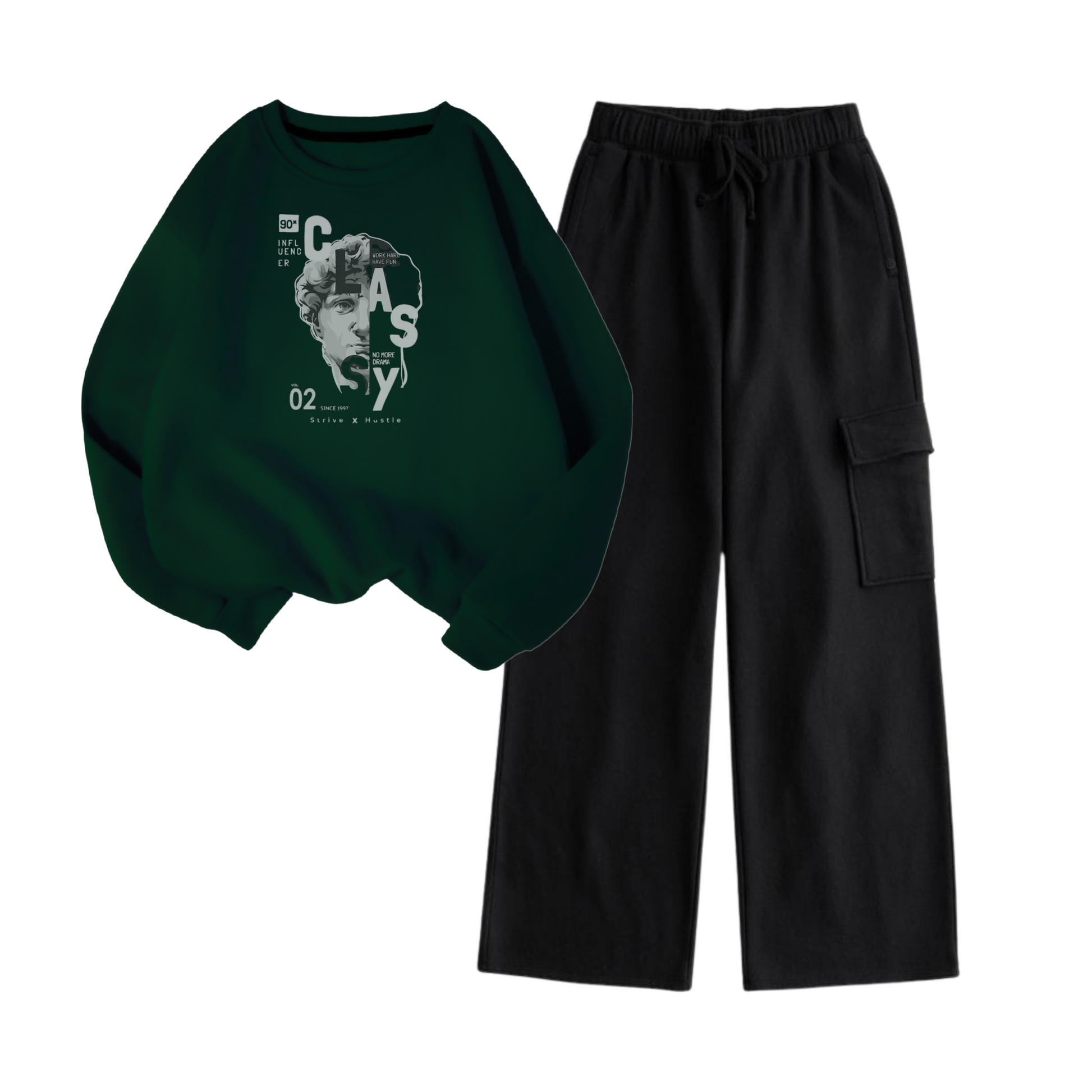 - Cargo Design: Features bottom pockets inspired by classic cargo style, adding functionality and style to the sweatshirt.