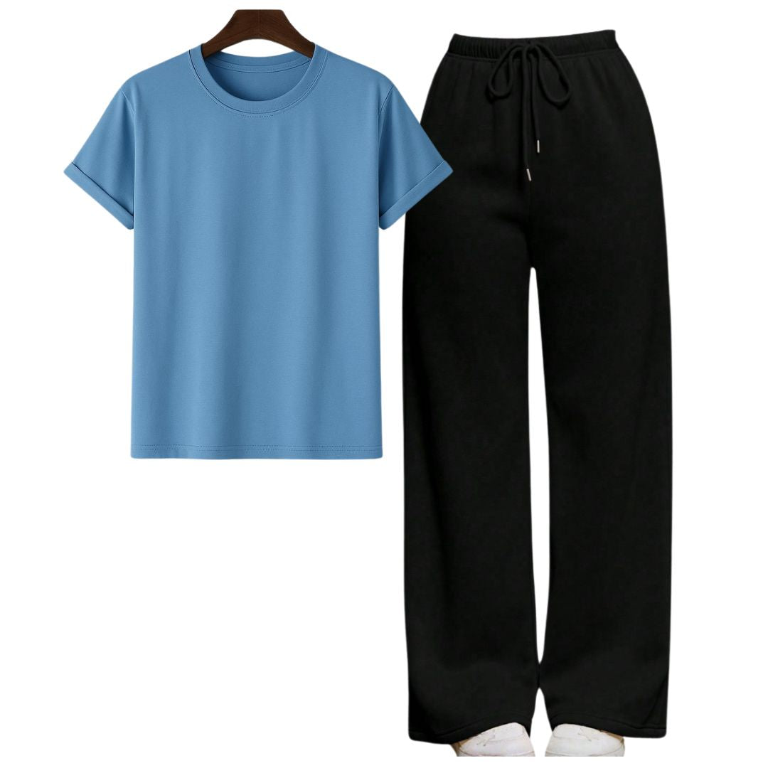 Sky Blue Regular Tee With Black Straight Leg Trouser