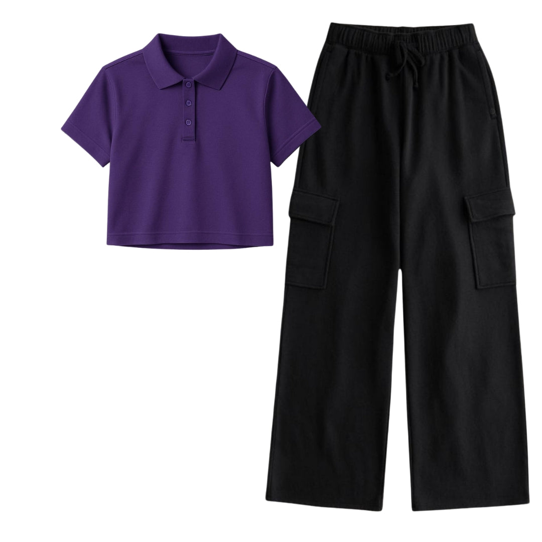 Purple Crop Polo With Black Cargo